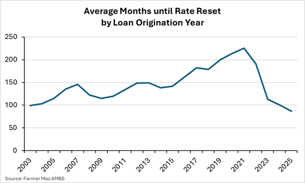 In our Winter 2025/2026 issue of The Feed, the article The Great Loan Shortening highlighted a shift in loan preferences among producers: As interest rates increased across the yield curve from 2021 to 2023, producers began selecting loan products with significantly shorter interest rate resets.